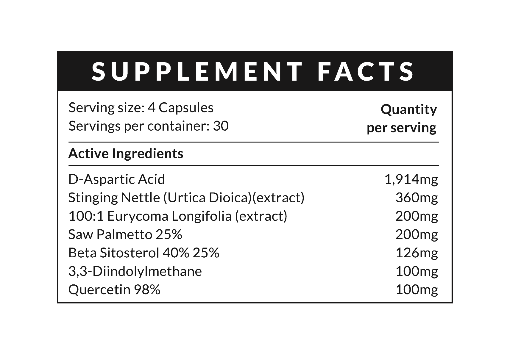 D-Aspartic Acid is an amino acid involved in increasing testosterone production and release within the human body. D-Aspartic Acid may help improve training performance, strength levels, lean muscle development, increase libido, sexual performance as well as may help promote a general feeling of well-being.