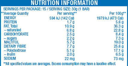 Please note: nutritional information is to be used as a guide only, actual values may differ between flavours and sizes and when formulations are modified or updated by the manufacturer. Contact us if you are have any questions regarding this products ingredients.