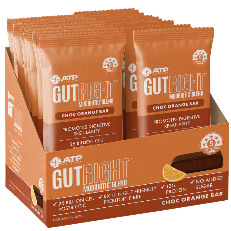 The Gutright™ Bar is a choc-coated snack with a soft choc-orange centre - a treat for your tastebuds and a smart choice for your daily routine.