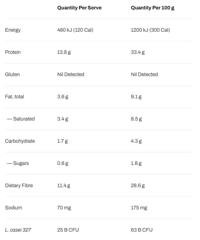 Each bar is a source of fibre and includes a balanced blend of prebiotics, postbiotics, and 11g of protein. It’s formulated with polyphenol-rich plant ingredients, L-Glutamine, and gut-friendly fibres to complement a balanced diet and keep you feeling satisfied.