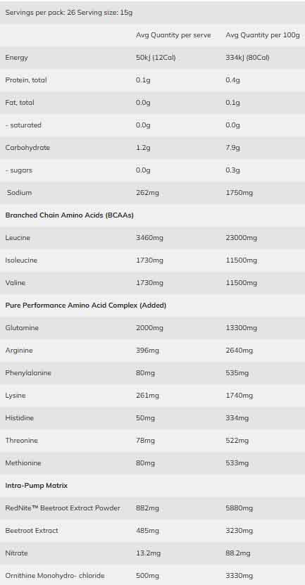 Balance Amino Complex is one of the most advanced amino blends on the market. Its unique combination of core ingredients include a high dose of Branched Chain Amino Acids (BCAAs) in the research-proven 2:1:1 Leucine:Isoleucine:Valine ratio, all Essential Amino Acids (EAA’s), Glutamine and our Intra Pump Matrix of Ornithine and RedNiteTM Beetroot Powder.