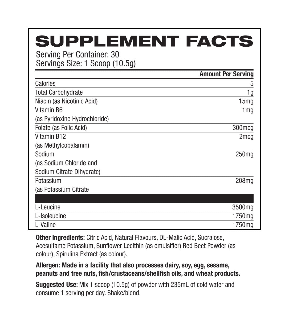 Mix one 10.5g scoop with 240ml of cold water. Drink during your workout for endurance and hydration, or after training to support muscle repair and faster recovery.