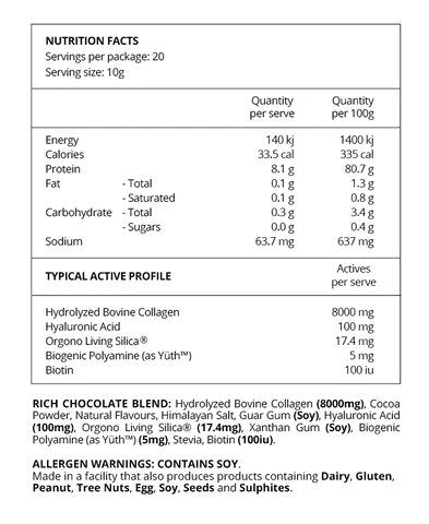 If you have severe allergies, please note that Collagen Complex is manufactured in a facility that also produces products containing Dairy, Gluten, Peanut, Tree Nuts, Egg, Soy, Seeds and Sulphites. While we take as much care as possible to avoid allergens, please chat to your GP, or contact our friendly support team for further information.