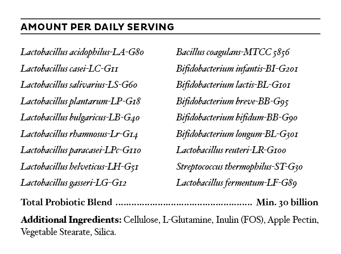 BePure Gut Renew Probiotic contains 18 strains of beneficial bacteria and a minimum of 30 billion viable bacteria per serving. These are all packed into a slow release capsule, scientifically designed to take two hours to break down, ensuring the viable bacteria in each serving reaches the most beneficial stage of the intestinal tract.