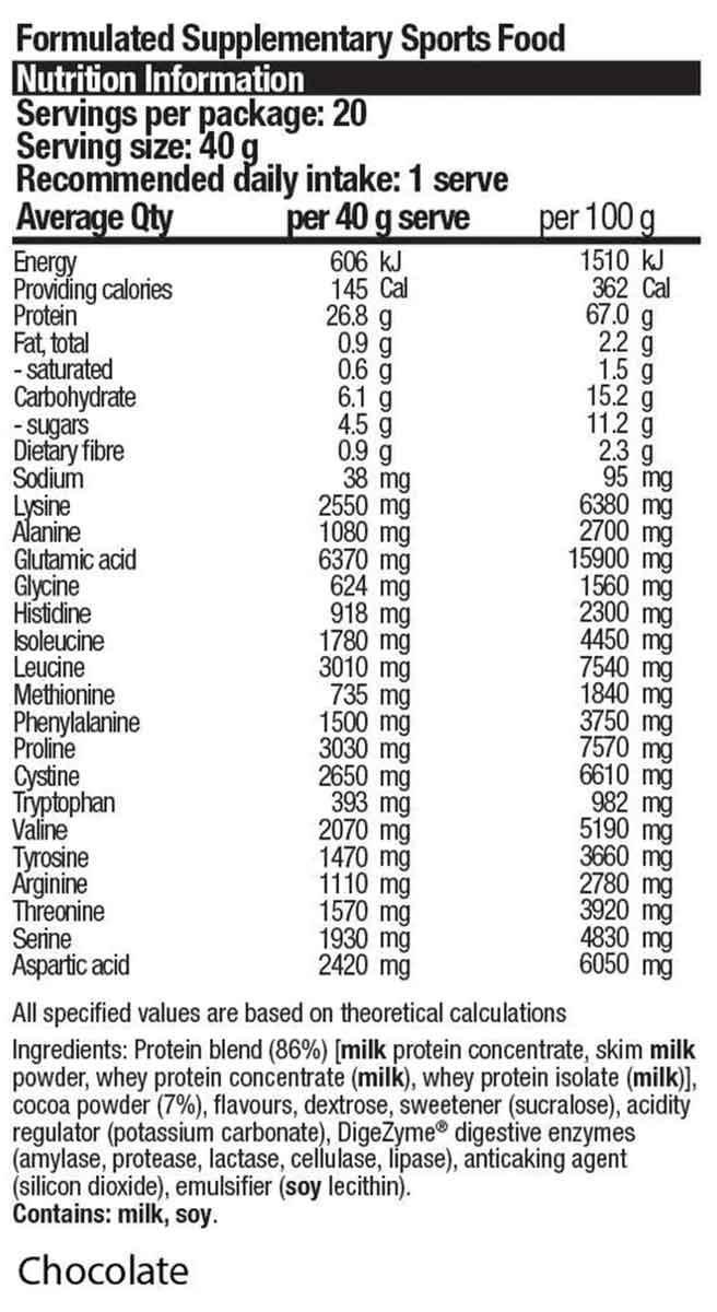 Please note: nutritional information is to be used as a guide only, actual values may differ between flavours and sizes and when formulations are modified or updated by the manufacturer. Contact us if you are have any questions regarding this products ingredients.