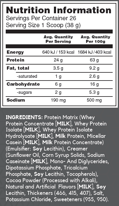Please note: nutritional information is to be used as a guide only, actual values may differ between flavours and sizes and when formulations are modified or updated by the manufacturer. Contact us if you are have any questions regarding this products ingredients.