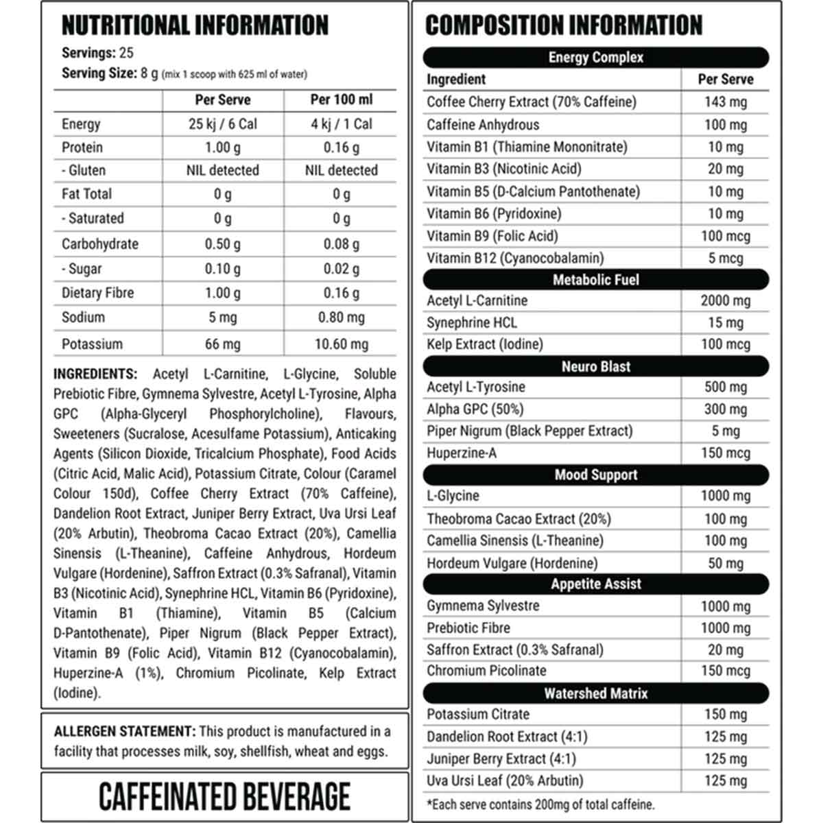 Please note: nutritional information is to be used as a guide only, actual values may differ between flavours and sizes and when formulations are modified or updated by the manufacturer. Contact us if you are have any questions regarding this products ingredients.
