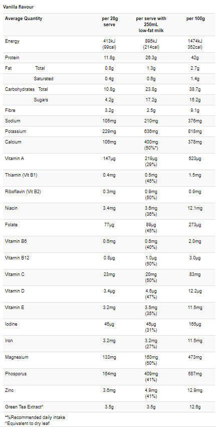 Please note: nutritional information is to be used as a guide only, actual values may differ between flavours and sizes and when formulations are modified or updated by the manufacturer. Contact us if you are have any questions regarding this products ingredients.