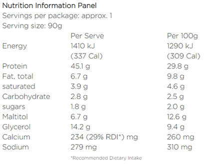 Please note: nutritional information is to be used as a guide only, actual values may differ between flavours and sizes and when formulations are modified or updated by the manufacturer. Contact us if you are have any questions regarding this products ingredients.