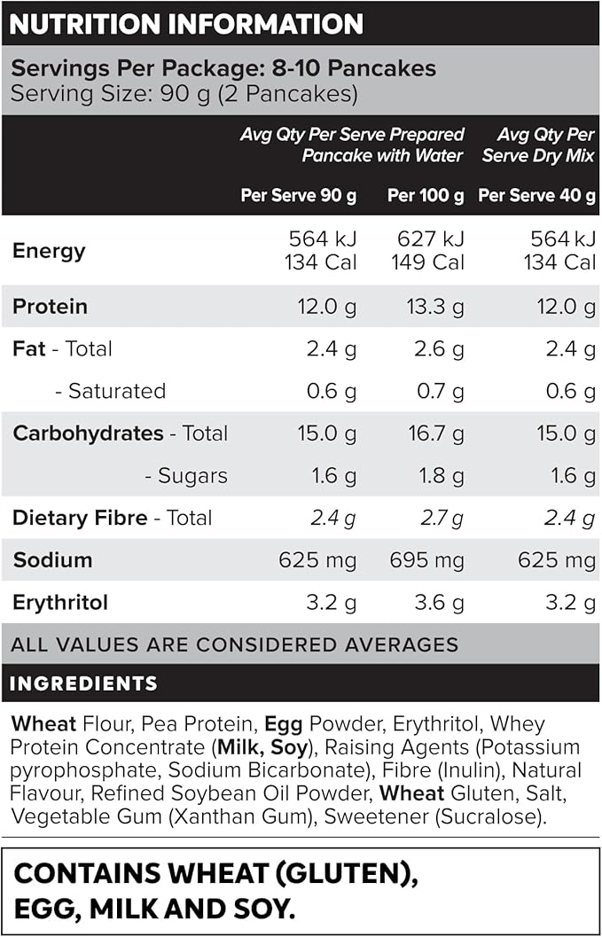 In no time, you will have ready-to-eat fluffy pancakes with the added benefits of protein and fibre. Muscle Nation pancakes are 98% Sugar Free, 97% Fat Free and the perfect breakfast, snack or a night time treat.