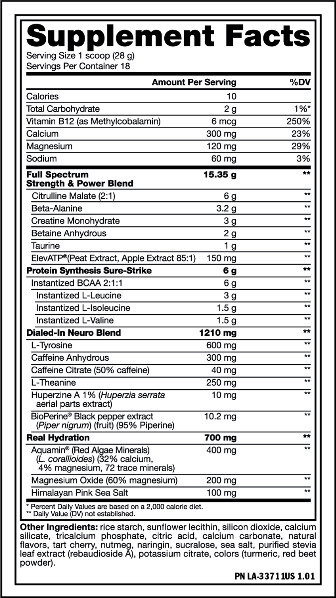 Literally combining ALL the proven, full-dose ingredients you need for a good old iron-smashing session, our Shawn Ray signature pre-workout maxes out the 4 cores of ultimate training performance: Strength & Power, Protein Synthesis, Neuro-hacking, and Muscle Hydration. Pure blunt force trauma packed into a 28g scoop of kick-ass motivation! To get big, you gotta lift big, and this all killer no filler, performance-altering formula offers the strength and muscle-building mayhem you need to break through your next wall. Helmets sold separately.