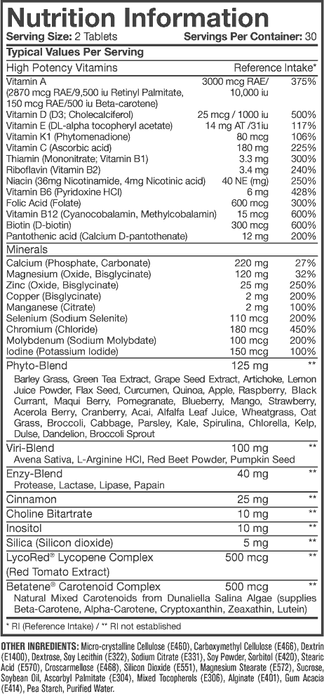 Take 2 tablets daily with a meal to ensure your body gets the nutrients it needs for optimal performance and recovery.