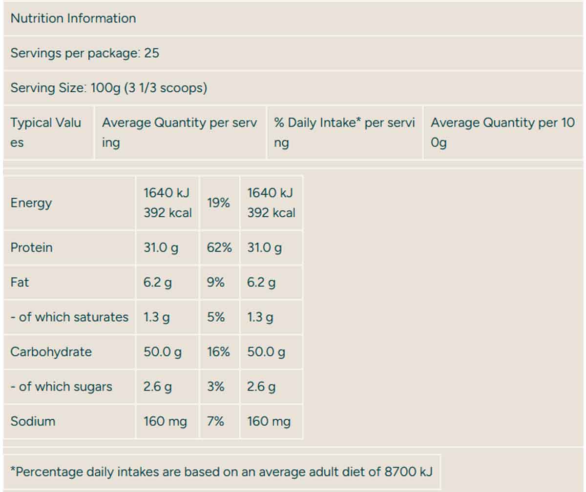 Please note: nutritional information is to be used as a guide only, actual values may differ between flavours and sizes and when formulations are modified or updated by the manufacturer. Contact us if you are have any questions regarding this products ingredients.
