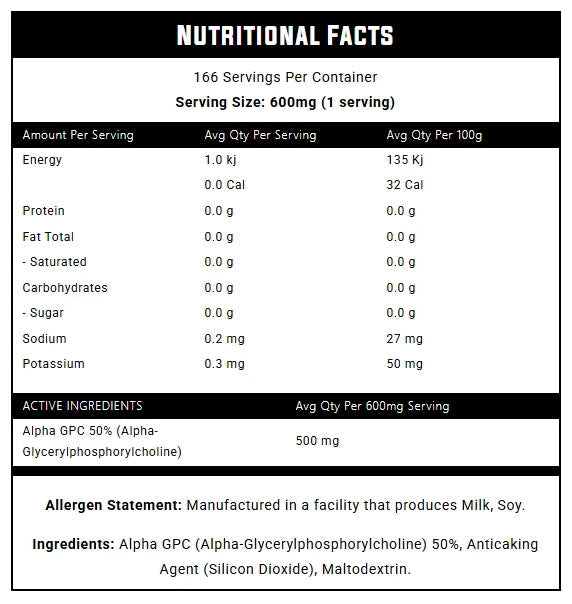 Unlock next-level focus and performance with Nexus Alpha GPC — a premium nootropic designed to support brain function, mental clarity, and cognitive drive. Popular with athletes, professionals, and students, Alpha GPC enhances acetylcholine production, the neurotransmitter linked to memory, learning, and focus.
