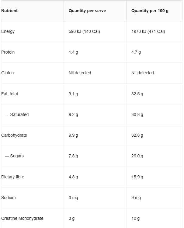 Please note: nutritional information is to be used as a guide only, actual values may differ between flavours and sizes and when formulations are modified or updated by the manufacturer. Contact us if you are have any questions regarding this products ingredients.