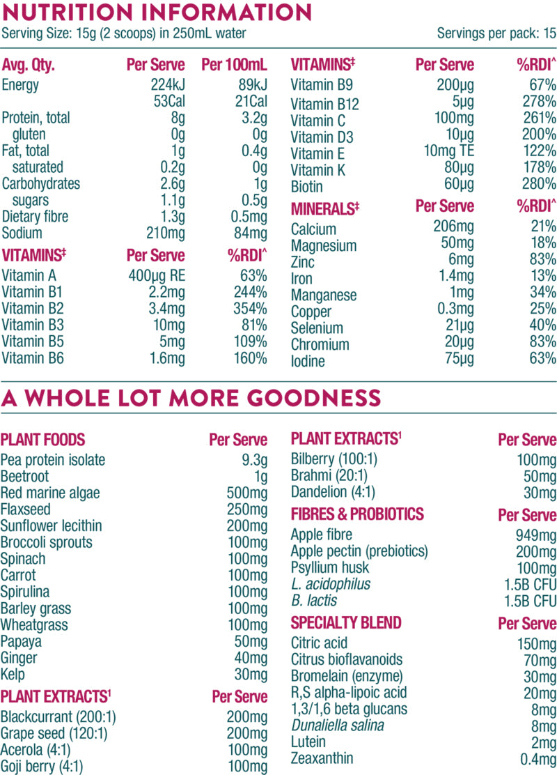 Please note: nutritional information is to be used as a guide only, actual values may differ between flavours and sizes and when formulations are modified or updated by the manufacturer. Contact us if you are have any questions regarding this products ingredients.