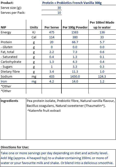Nuzest Protein + Probiotics: The ultimate fusion of pure plant protein and gut-friendly probiotics. A dynamic duo for fuelling workouts and boosting overall well-being. A plant protein smoothie mix fortified with pre and probiotics for gut and digestive support. With 20g protein, 1 billion CFU shelf-stable probiotiucs and up to 4g fibre.