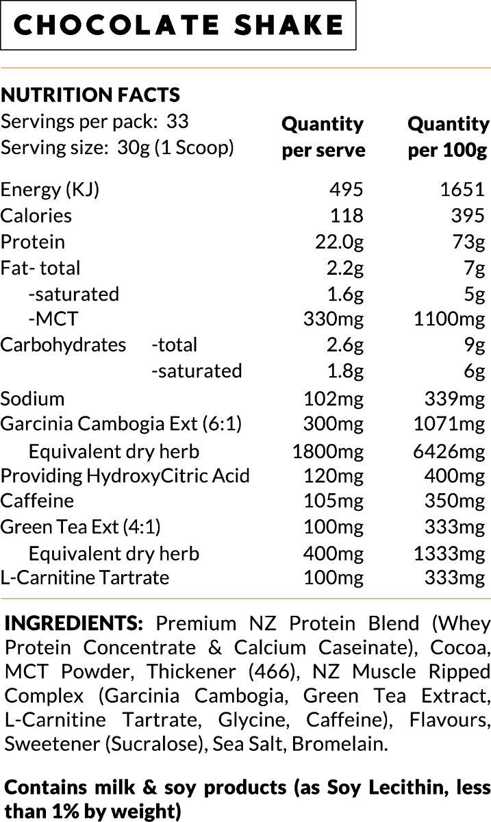 NZ Muscle Lean Protein is crafted from premium whey protein blend to deliver a lean, fast-absorbing protein hit with minimal carbs and fats. Enhanced with thermogenic ingredients, including green tea extract, l-carnitine and garcinia Cambodia extract, NZ Muscle Lean Protein helps support your metabolism while promoting lean muscle growth.