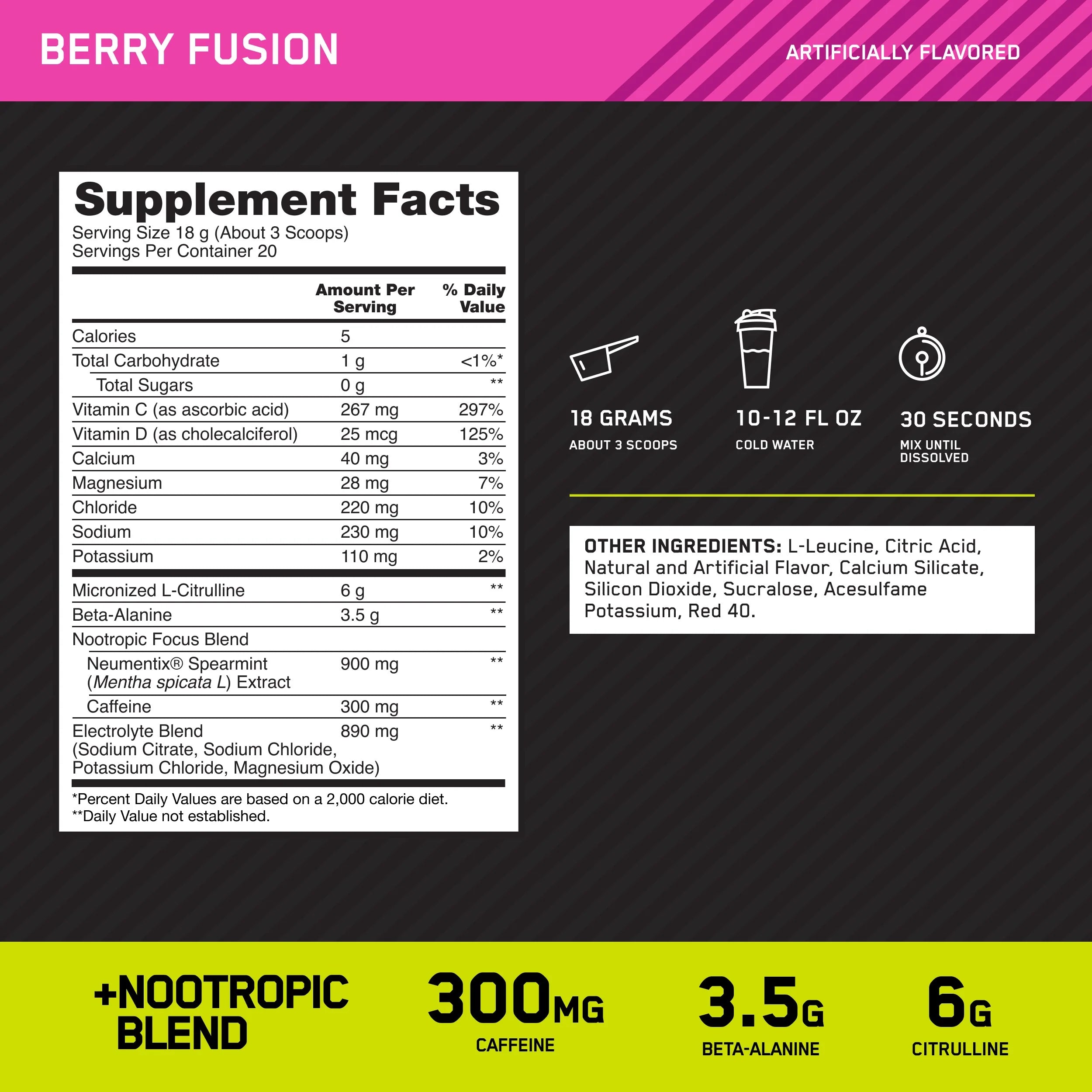 Optimum Nutrition AMPED Pre-Workout is a high-stim, nootropic-enhanced formula designed to support intense pump, explosive energy, and laser focus. Featuring 300 mg of caffeine with Neumentix®, 6 g of L-citrulline, and 3.5 g of beta-alanine, this blend is built for athletes and high-intensity trainers who want to elevate performance and push harder in every session.