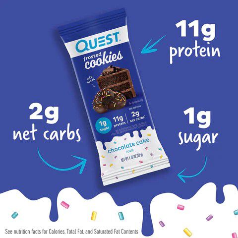 Quest Frosted Cookies satisfy your hunger with 5g of protein, and your sweet tooth, with less than 1g of sugar and 1g of net carbs. Keto-friendly.