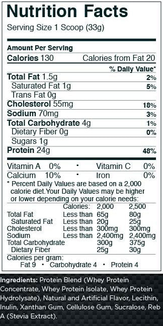 100% Whey Protein from 3 sources: concentrates, isolates, and hydrolysates.