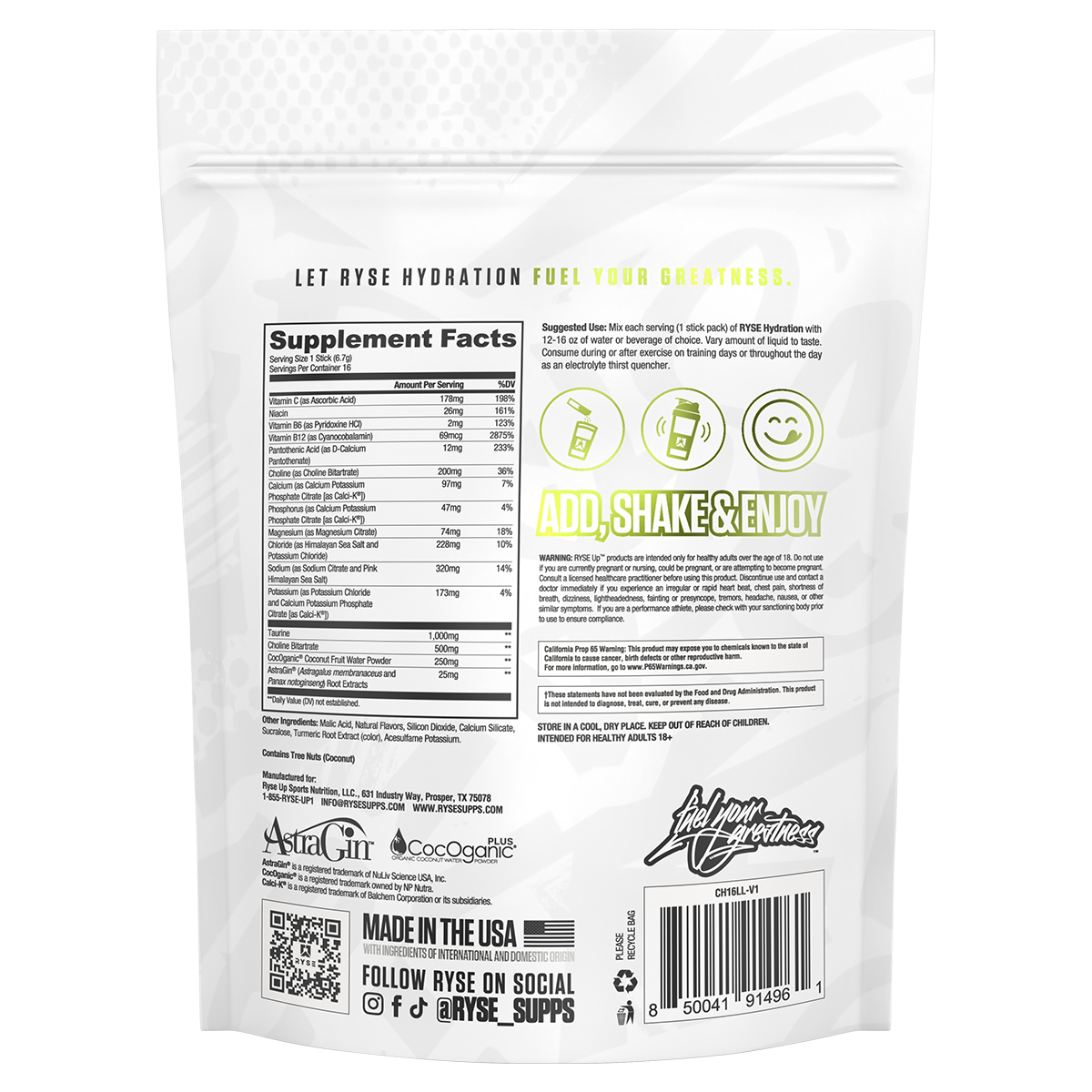 RYSE Hydration is your daily health and hydration optimizer. Through the inclusion of full spectrum electrolytes