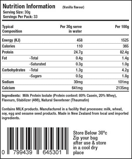 This delicious, great value option will impress you with its flavour profile and easy mixing. Each serve contains a generous 24.7g of casein protein.