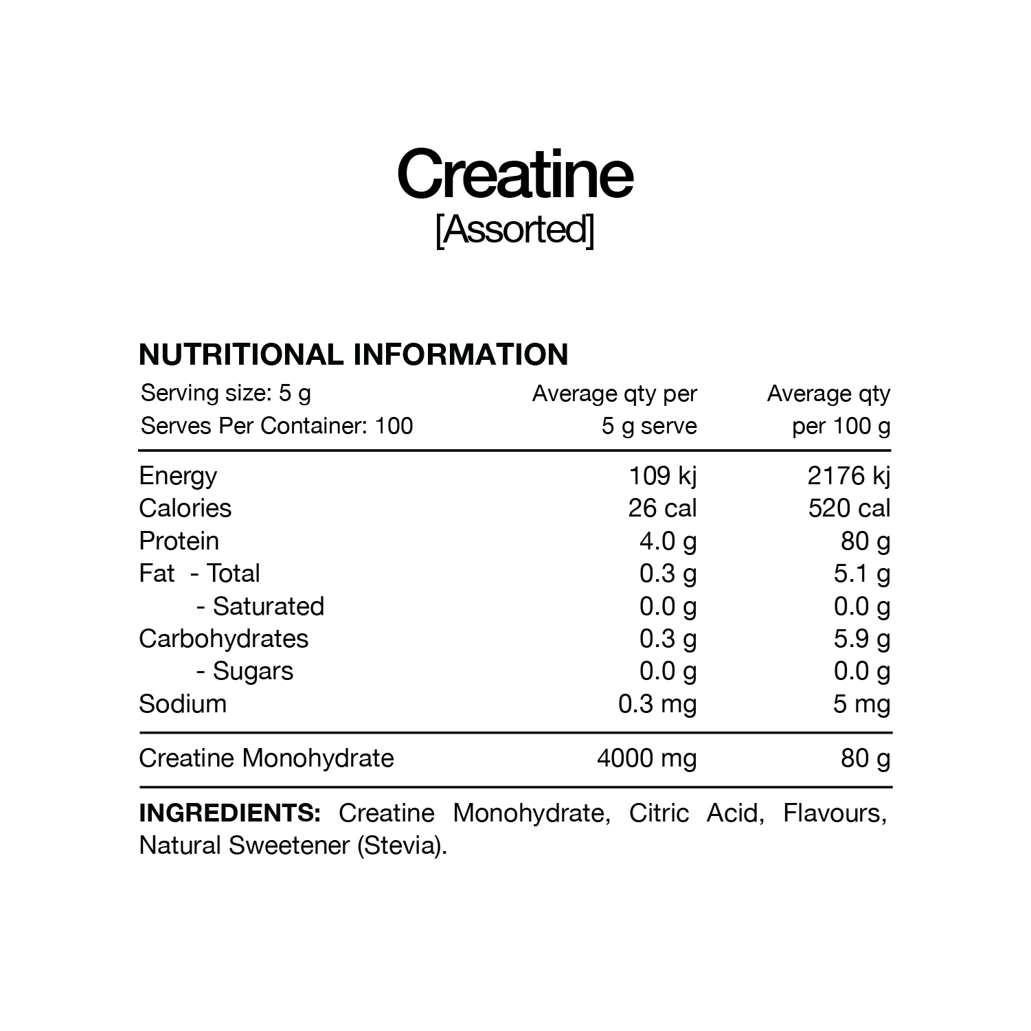 Switch Nutrition Flavoured Creatine is a delicious, performance-focused creatine monohydrate supplement that delivers 3–5 g of pure creatine per serving to enhance strength, power, and recovery. Flavoured and micronised for smooth mixing, it’s made to make consistency easy, with no loading phase required.